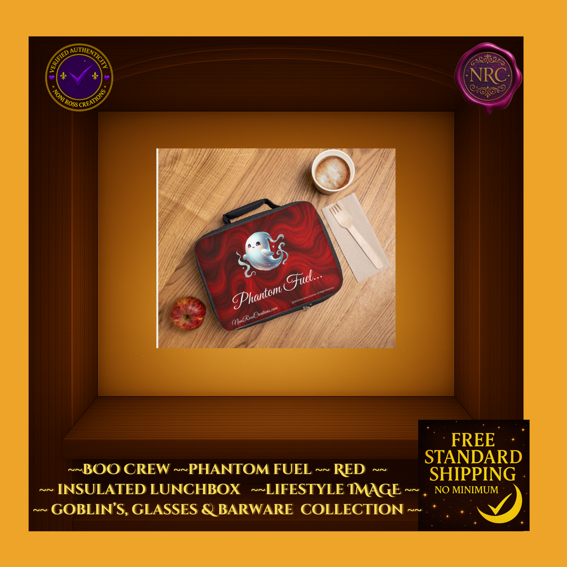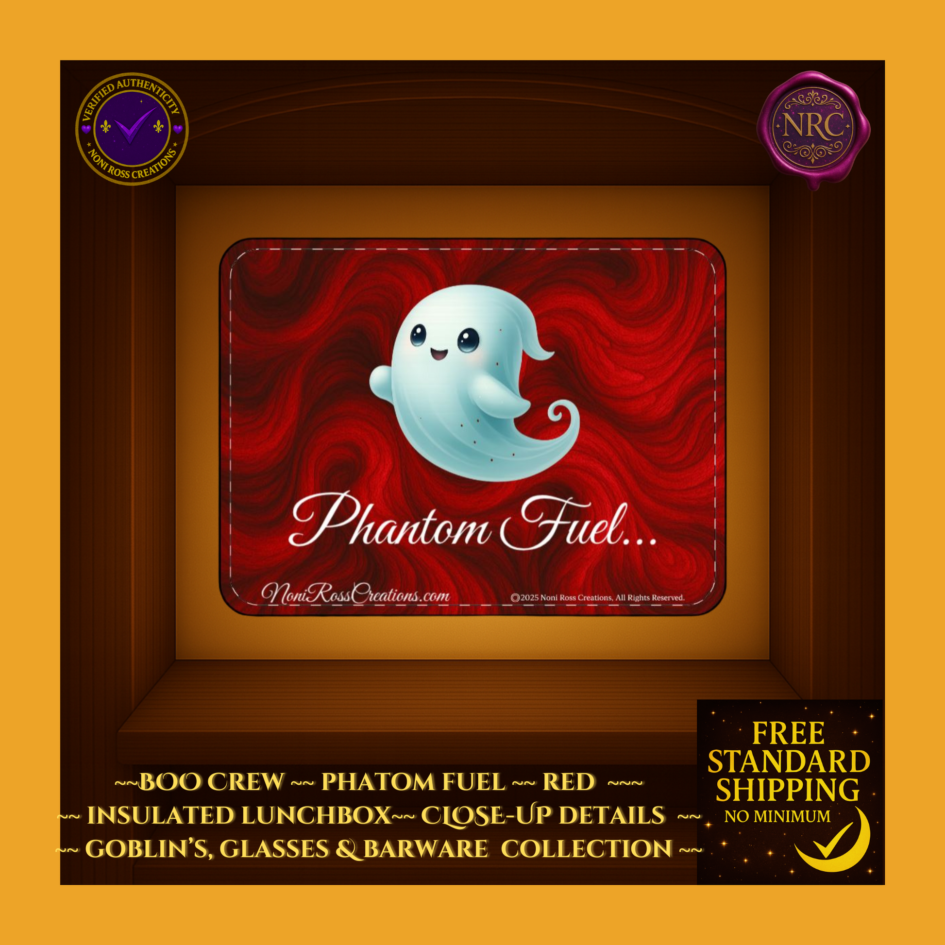 Keep your lunch as cool as your vibe with our Phantom Fuel Lunch Box from the BOO Crew Collection! This soft insulated bag features our adorable ghost floating over a swirling blood-red background, perfectly blending cute and spooky. The fully lined interior keeps food fresh, while the durable polyester exterior makes it easy to clean—ideal for work, school, or on-the-go adventures.