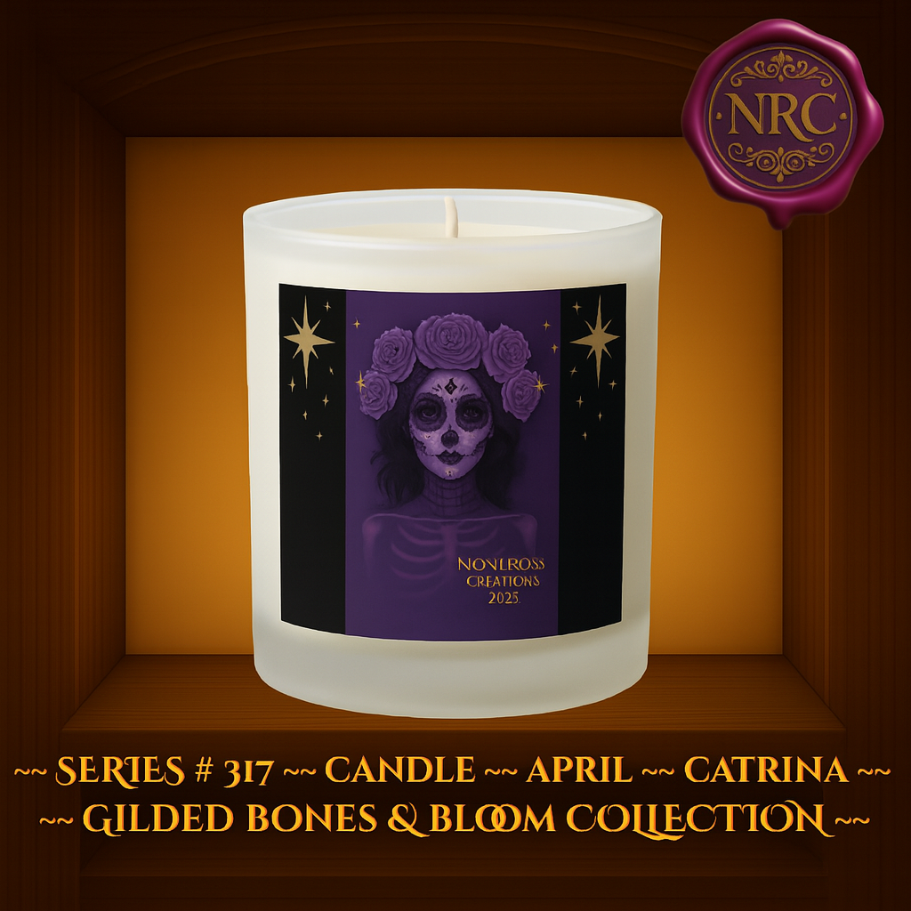 Light the flame of ancestral grace with our April Queen of the Dead Catrina Candle, a radiant tribute to divine femininity. This striking design from the Gilded Bones & Bloom Collection features an elegant April Catrina adorned in soft lavender and pearl tones, symbolic of rebirth, beauty, and quiet strength. With intricate floral details and a confident gaze, she reminds us that even in darkness, grace and resilience bloom eternally. The frosted glass vessel casts a warm glow, perfect for altars, meditation spaces, or gothic home décor. Let her presence illuminate your sacred rituals or serve as a powerful reminder of feminine fortitude.