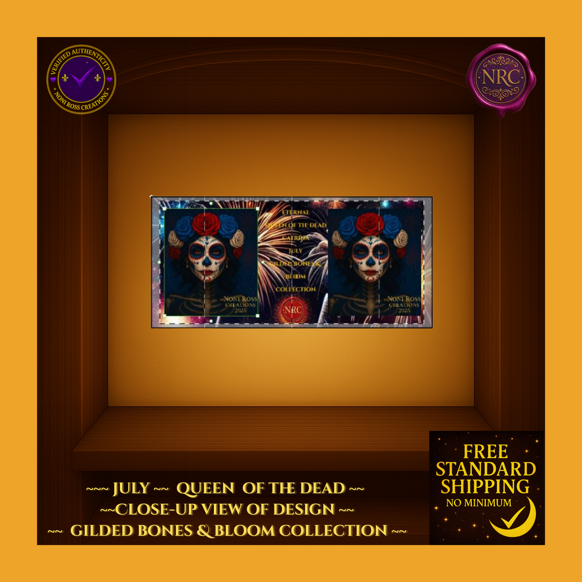 Ignite your July celebrations with the July Eternal Catrina Mug, Series #114 from our Gilded Bones & Bloom Collection. This stunning female Day of the Dead Catrina radiates patriotic spirit with vibrant red, white, and blue accents, elegant sugar skull details, and subtle fireworks in the background—perfect for 4th of July gatherings or July birthdays. Crafted from high-gloss black ceramic, this mug is microwave and dishwasher safe for effortless use. Enjoy free US shipping with no minimum, and save more when you bundle with matching journals or candles. Celebrate freedom, beauty, and gothic charm with each sip from this Eternal Series treasure!