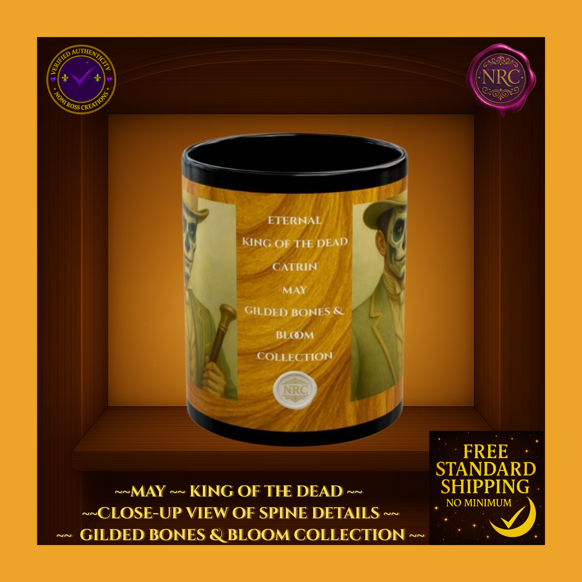 Step into the mystique of May with the Eternal Catrin Mug from our Gilded Bones & Bloom Collection. Featuring a regal male Day of the Dead Catrin adorned with rich, jewel-toned face paint and May-inspired floral elements, this striking design embodies the power and transformation of spring. Enjoy every sip from this durable black ceramic mug with vibrant, fade-resistant artwork. Free standard shipping in the US—no minimum order required. Pair it with matching journals or candles and save with our exclusive bundles. Embrace the magic of the Eternal Series today!
