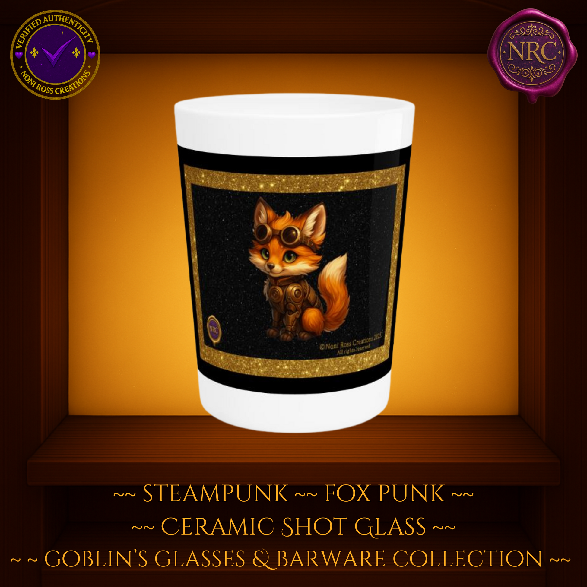 Steampunk Fox Punk Ceramic Shot Glass by Noni Ross Creations