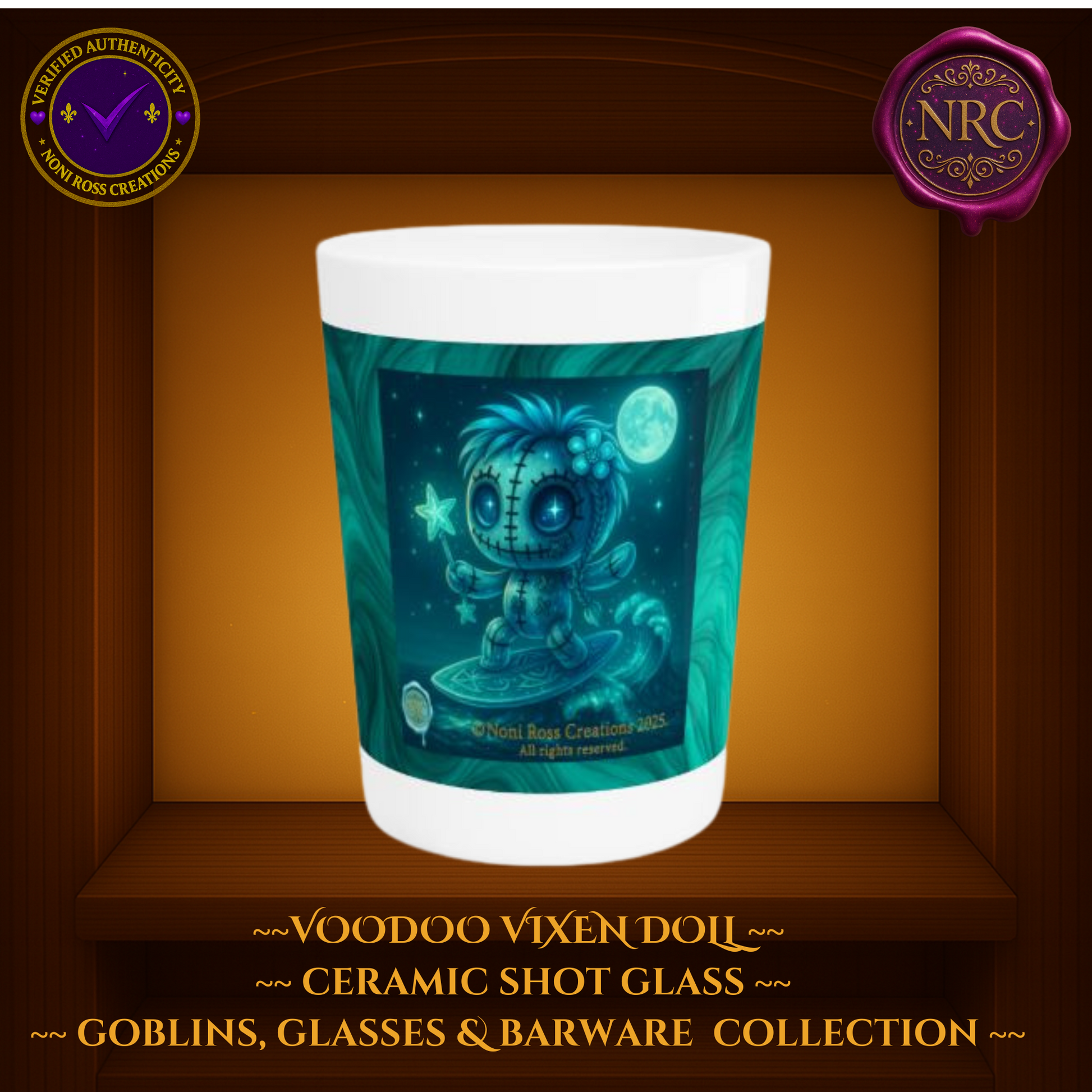Voodoo Vixen Doll Teal Surfer Girl Ceramic Shot Glass by Noni Ross Creations