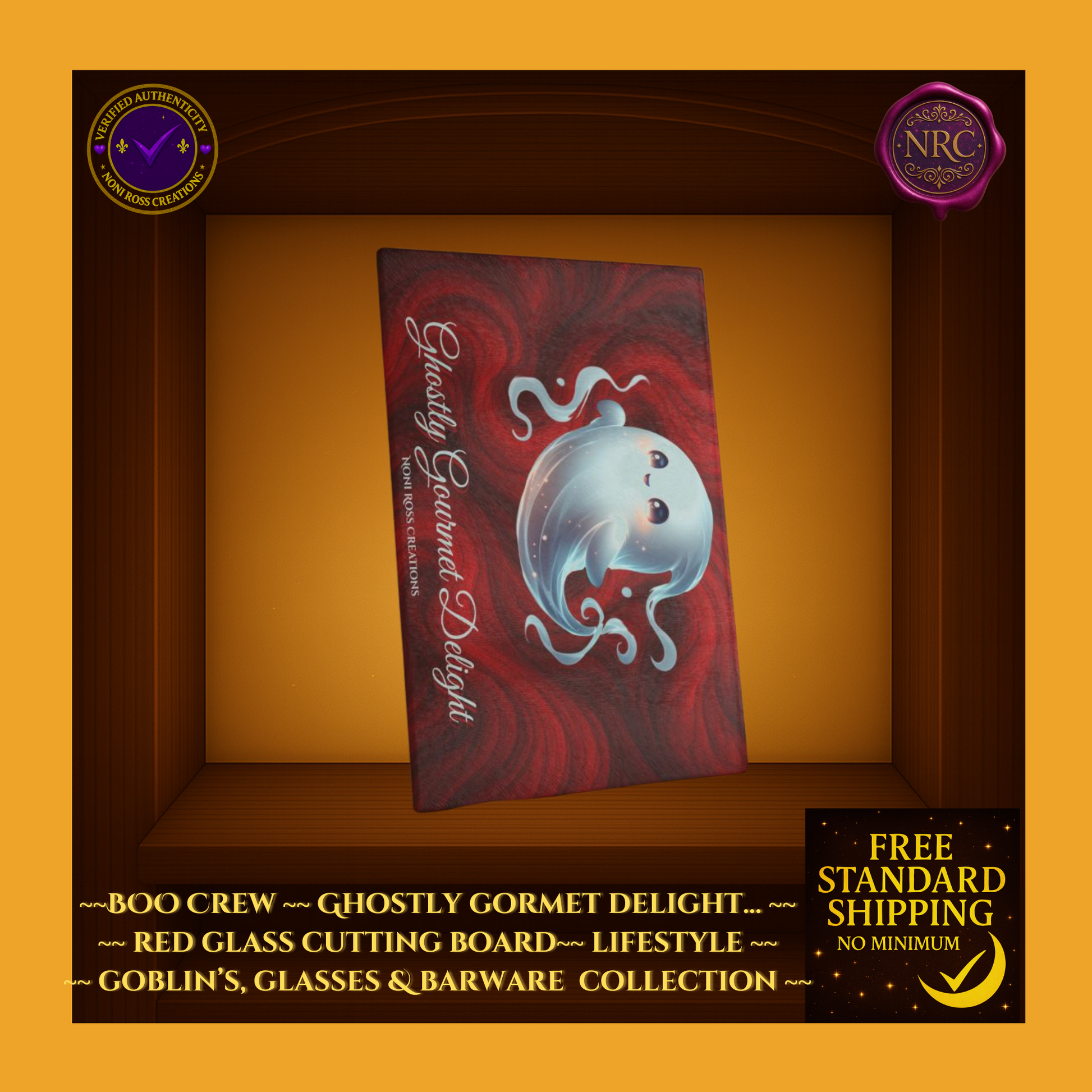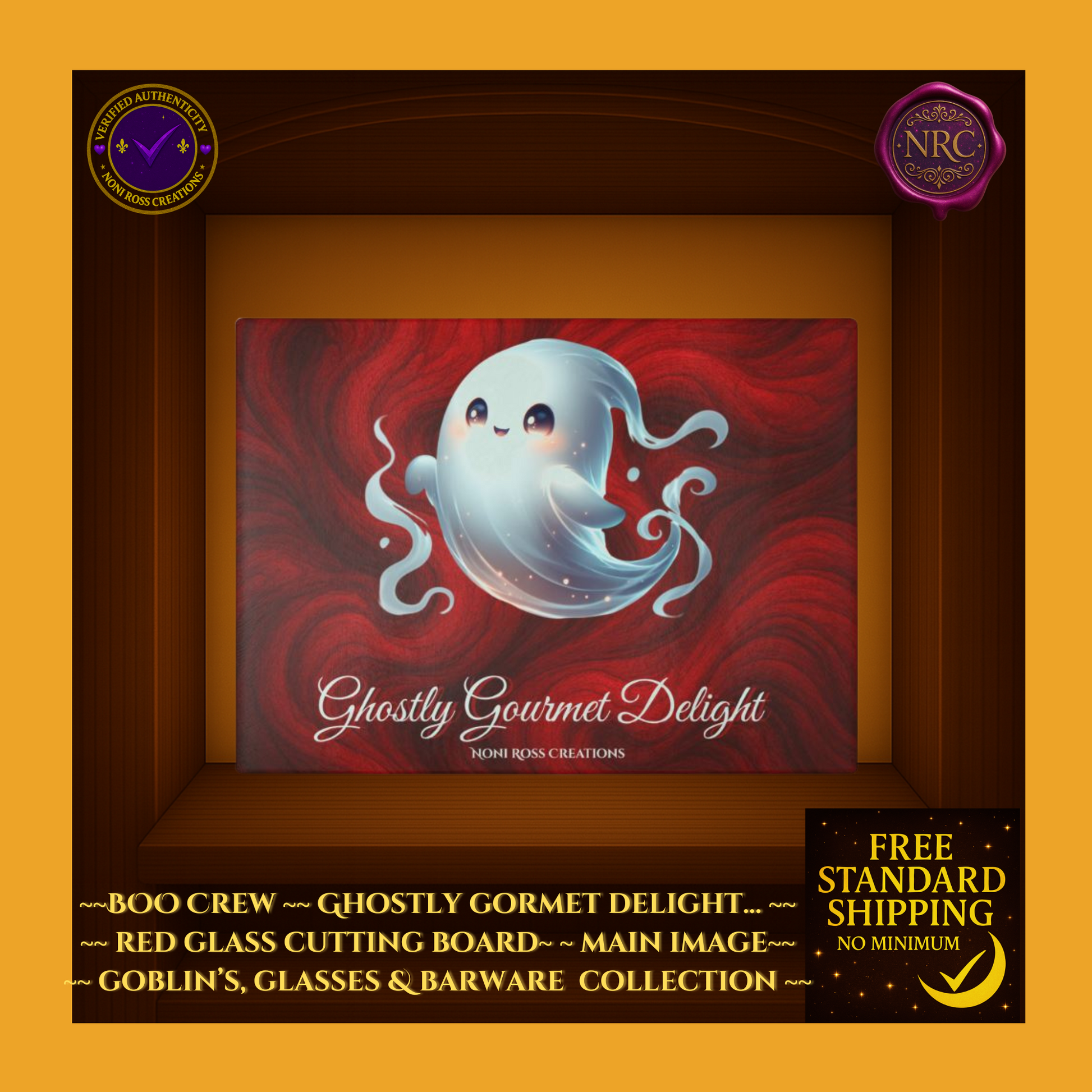 BOO Crew Ghostly Gourmet Delight Glass Cutting Board by Noni Ross Creations